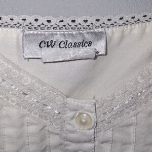 This nightie is a vintage 80s - 90s romantic nightgown is a size M. It has lace straps and a button closure with pintuck detailing that is perfect for a country or cottagecore style. Made from lightweight cotton, the lace-trimmed straps and ruffled hemline add a touch of elegance to this charming and comfortable nightgown by CW Classics.