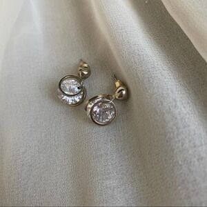 VTG CZ Diamond Front Back Circle Dangle Earrings