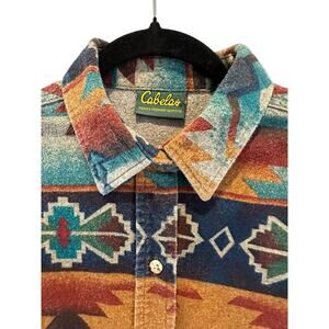 VTG Cabela’s Women’s Southwestern Boho Aztec Print Flannel Size M MadeinUSA