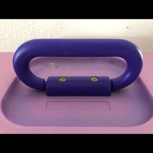 VTG Caboodles 2 Tier Make-Up Case. Purple W/Darker Purple inside. Lots of room for essentials. Good condition. There is a dried glue? Spot on the top.. see pic.. may be able to pop off I have not tried. Some minor discolor. Closed perfectly.. tiers in VGC.