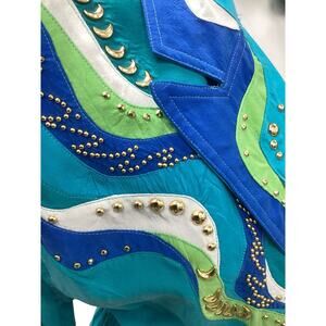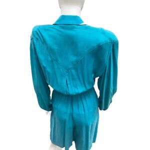 VTG Caché Romper Women’s SZ S Silk Gold Bling Design Very Cool Piece Turquoise