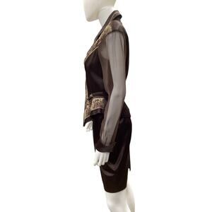 VTG Cache 2 Piece Set Jacket+Skirt Women’s Size 6 Sheer Sleeve Zipper Dark Brown