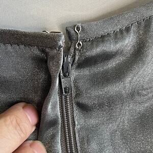 Gunmetal Silver Metallic Dress with fitted waist and Bow