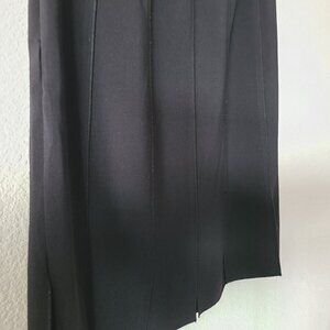 Vintage Cache US women's size 0 black mini skirt featuring open pleats at hemline. Approximate measurements have been provided in photos for fit. No major flaws to note. Side zip closure.