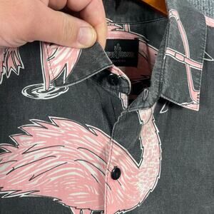 VTG Cactus Club Los Angeles Shirt Men's Large Black/Pink Flamingo Allover 90's
