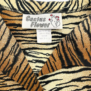 VTG Cactus Flower Womens Western Blouse Size Medium Zebra Stripe Cowgirl Rodeo