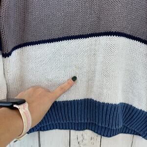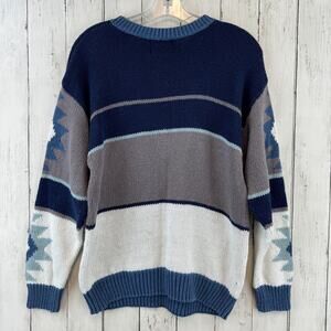 VTG Cafe Blue/White Southwest Aztec Striped Knit Crewneck Sweater Size Medium