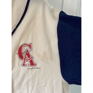 This vintage California Angels MLB baseball shirt is perfect for any true fan! Made from high-quality materials and officially licensed by the league, this shirt features a classic gray color and single stitch design. It's available in size Large and showcases the Angels team name and logo proudly on the front.