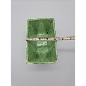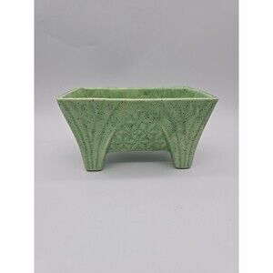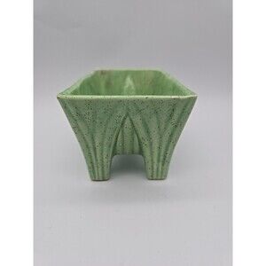 This vintage California pottery planter is a charming addition to any home decor. The light green color and speckled design add a touch of mid-century modern style to your space. Measuring at 3.5 inches in height, this planter is perfect for displaying your favorite succulents or small plants.