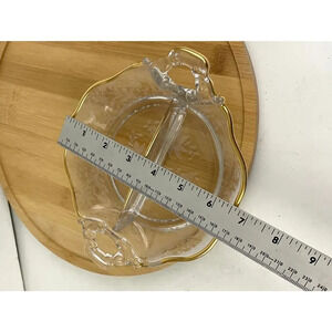 VTG Cambridge Divided Handled Relish Glass Dish Wildflower Clear Gold Trim