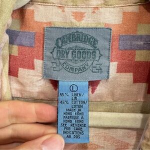 VTG Cambridge Dry Good Womens Large Linen Blend Aztec Southwestern Button Down