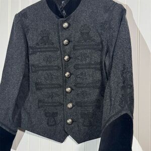 VTG Cambridge Dry Goods Military Band Jacket Gray Wool Velvet Trim Embroidered 6