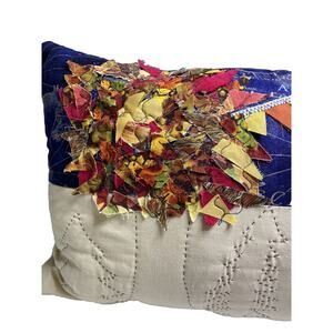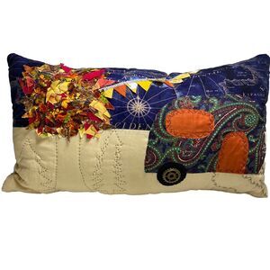 VTG Camping Throw Pillow Hand Made Seasons Fall Spring Reversible Quilted Embell