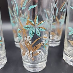 VTG Canadian Wheat Georgian Tall Glasses Tumblers China Set Of 6 Turquoise and Gold Glasses features a beautiful Canadian Wheat pattern in multicolor, adding a decorative element to any occasion. The round glasses have a diameter of 2.75" 6-3/4" tall, and hold approximately 12 oz. Care instructions for these elegant glasses include hand wash only. These original glasses from the 1950s production style of Elegant Glass are perfect for all occasions. Whether you're hosting a dinner party or having a casual night in.