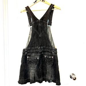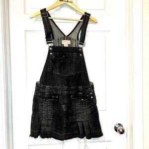 Vintage Candies Suspender Pleated Black Jean overall mini skirt XL