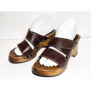VTG Candie's Y2K Brown Leather 3" Wood Platform Heel Sandal 7 Slip On Studded