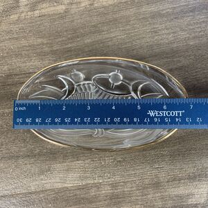 VTG Candy Glass Maple Leaf & Oval Dish with Gold Trim Set of 2 Clear Plates