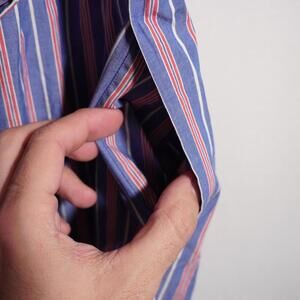 VTG Candy Striped House Dress Sleeveless Preppy Nautical Retro Blue Red L SEE