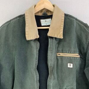 VTG Canvas Chore Coat Mens Medium Green Faded Detroit Style Distressed Workwear
