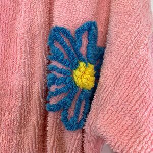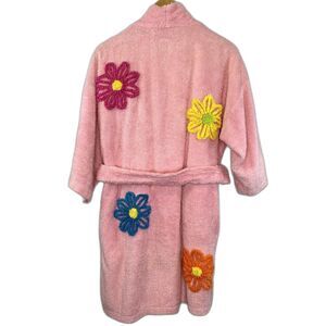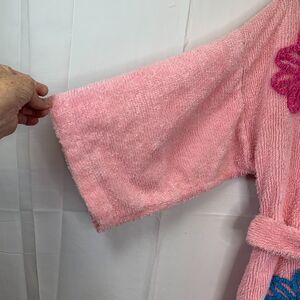 VTG Canyon Group Chenille Pink Floral Short Robe Womens Small Lounge USA Made