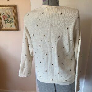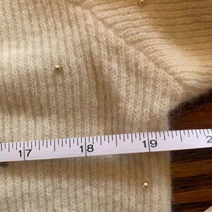 VTG Cardigan Sz M Ivory Lambs Wool Angora Blend Beaded Comfy Cozy Grandmacore