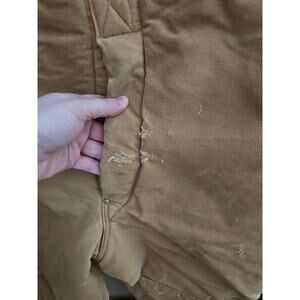 VTG Made in USA Carhartt Brown Canvas Double Knee One Piece Insulated Bib Overalls Men's Size 46 short. Size tag removed, however they are a size 46. The waist measures a couple inches larger. Item has some tears and stains, however still in solid condition. Pre-owned