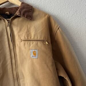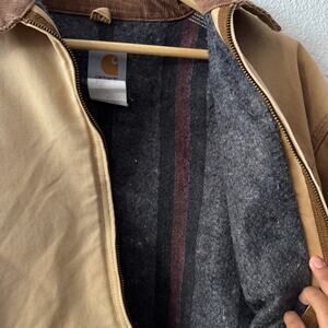 VTG Carhartt Detroit Jacket Mens 48 Tall J01 BRN Tan Blanket Lined Canvas Work
