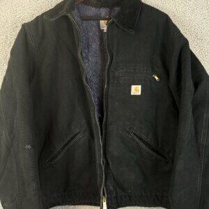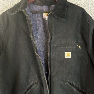 VTG Carhartt Jacket Mens XL Tall Detroit Blanket Lined Black Faded Canvas USA