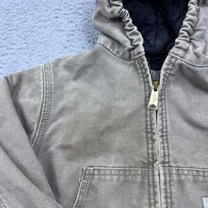 VTG Carhartt Jacket Y06DES Kids Quilt Lined Duck Canvas Hooded Coat Youth S READ