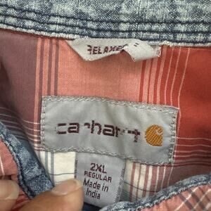 VTG Carhartt Relaxed Fit Pearl Snap Cowboy Shirt Short Sleeve Mens 2XL Western