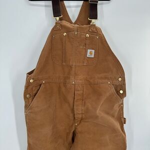 VTG Carhartt R01 BRN Mens 44x28 HEAVY DUTY Distressed Overall Bibs Double Knee. Shows signs of wear, please see all photos!