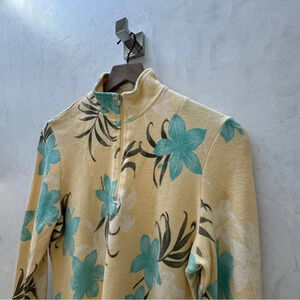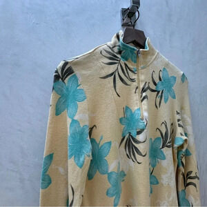 VTG Caribbean Joe || Knit Hawaiian Floral Quarter Zip Sweater Small