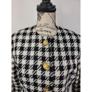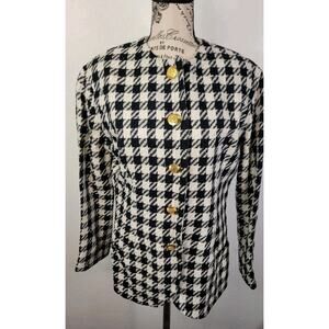 VTG Carlisle Blazer SZ 8 Houndstooth Tweed Jacket 100% Silk White Black Preppy