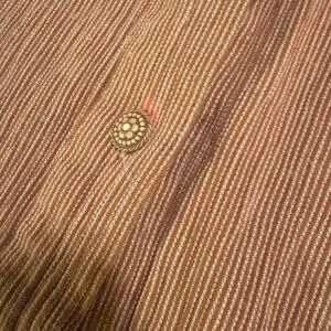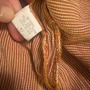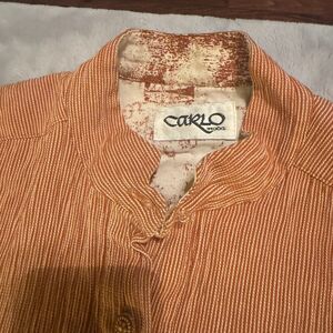 VTG Carlo Moda orange stripe button down shirt womens M crinkle mandarin collar