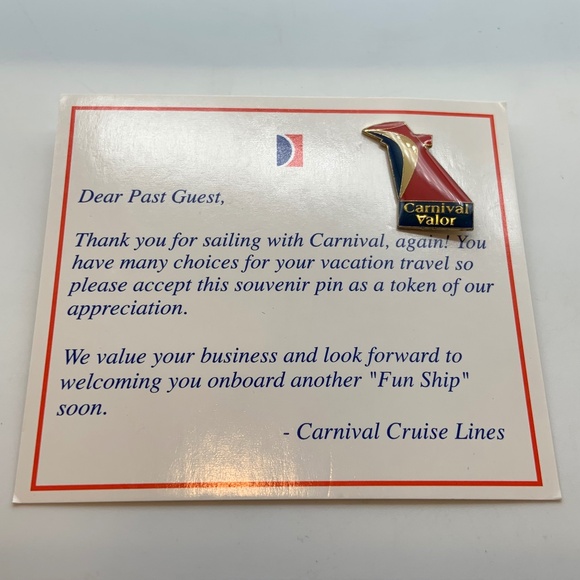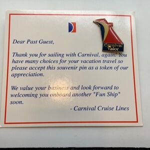 VTG Carnival Cruise Lines Carnival Valor Collectible Lapel Pin and Card