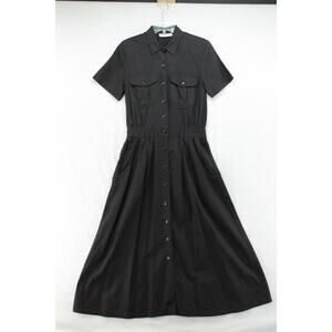 VTG Carol Horn Workshop Midi Dress Women's 8 Black Button up Short Sleeve Prairie