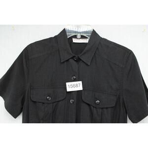 VTG Carol Horn Workshop Midi Dress Womens 8 Black Button up Short Sleeve Prairie