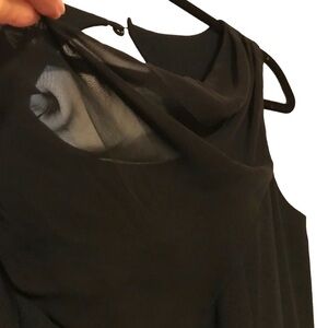 VTG Carole Little Black Halter Midi Sheath Dress Sheer Cowl Neck Date Formal