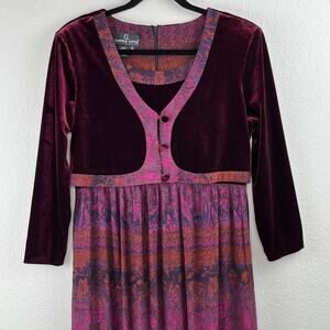 Vintage Carole Little Petite Maroon Multi Burnout Velvet Floral Jacket Midi Dress 12/14
