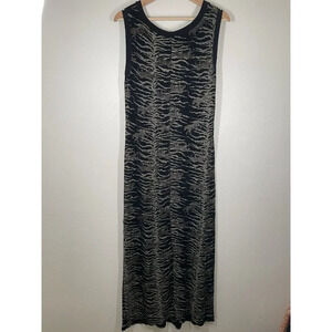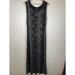 VTG Carole Little Sleeveless Maxi Dress 8 Black Gold Leopard Print Animal Print