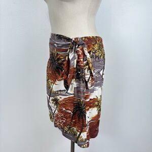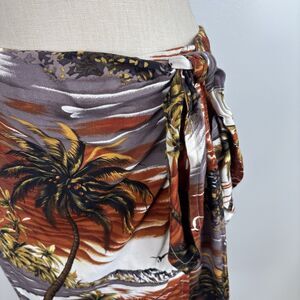 VTG Carole Little Sport Rayon Wrap Skirt Paradise Island Mural Graphic