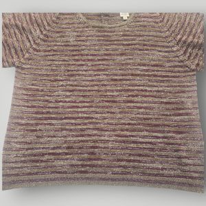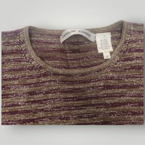 Caroline Kendrick Women's M Gold Burgundy SILK Blend Short Sleeve Pullover Sweater