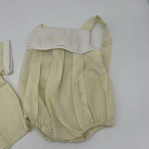This vintage Carriage Boutique romper and shirt set is perfect for your little one's summer wardrobe. The yellow color, trains, and embroidered details make for an adorable and playful outfit. The short-sleeved design and sportswear/beach look make it ideal for casual occasions.