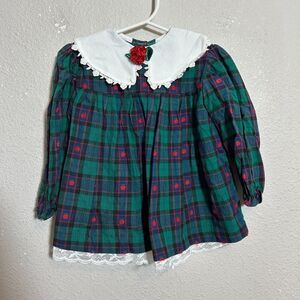 VTG Carters Girls Baby Plaid Dress 24M Embroidered Apples Green Collar Fall 90s