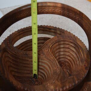 VTG Carved Wooden Collapsable Bowl/Basket Paisley Design Trays 3 Sections