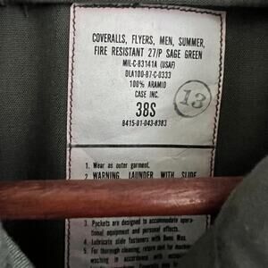 VTG Case Inc Military Fire Resistant Flight Suit Coverall Green Size 38S