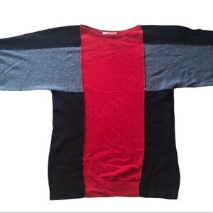 . Cashmere 100% 2 Ply Cashmere 3/4 Color Block Sweater S Black Red Gray Cozy Soft