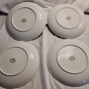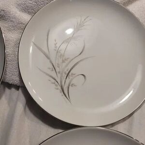 The VTG Castlecourt Fine China Japan Wheat Spray 4 Salad Bread Plates are a vintage set of four-piece round salad plates teaturing a decorative wheat spray pattern. Made of fine bone china with a glossy white tinish, these plates are perfect for all occasions and add a touch of elegance to your dining table.