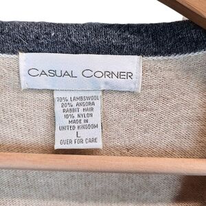 Step into timeless elegance with this vintage Casual Corner cardigan, crafted from a luxurious lambswool and angora blend for ultimate softness and warmth.