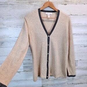 VTG Casual Corner Womens Lambswool Angora V-Neck Cardigan Large Beige Grunge 90s